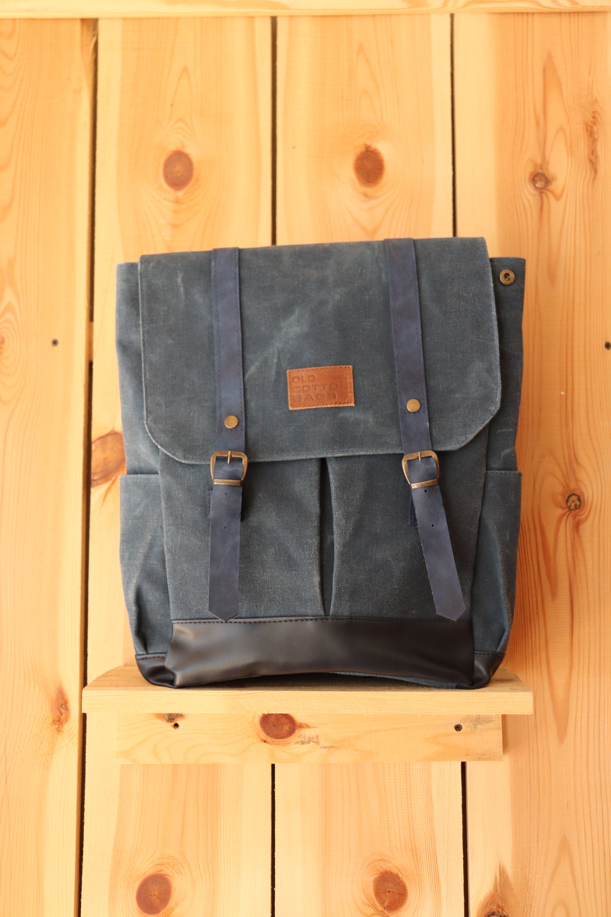 Mavi Kanvas Çift Tokalı Sırt Çantası – Günlük & Seyahat