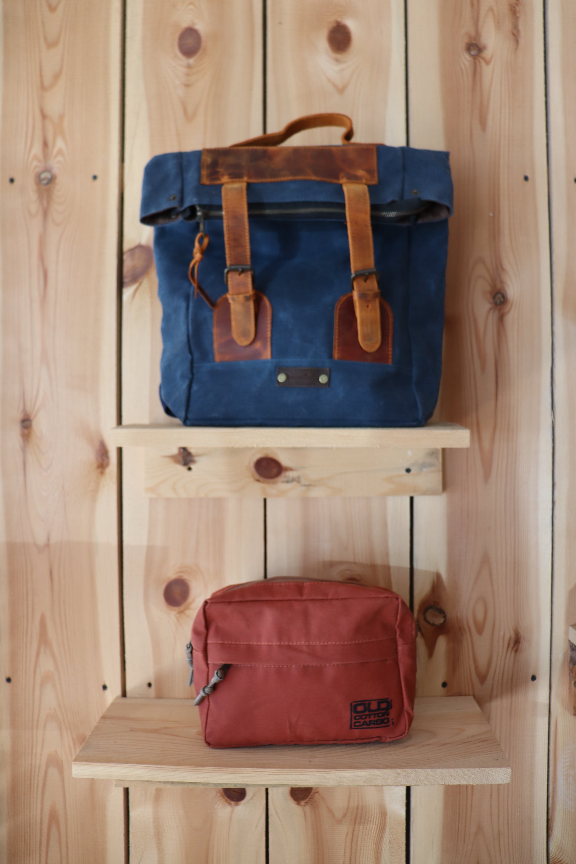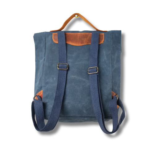 Lacivert Kanvas Deri Tokalı Sırt Çantası – Retro Stil