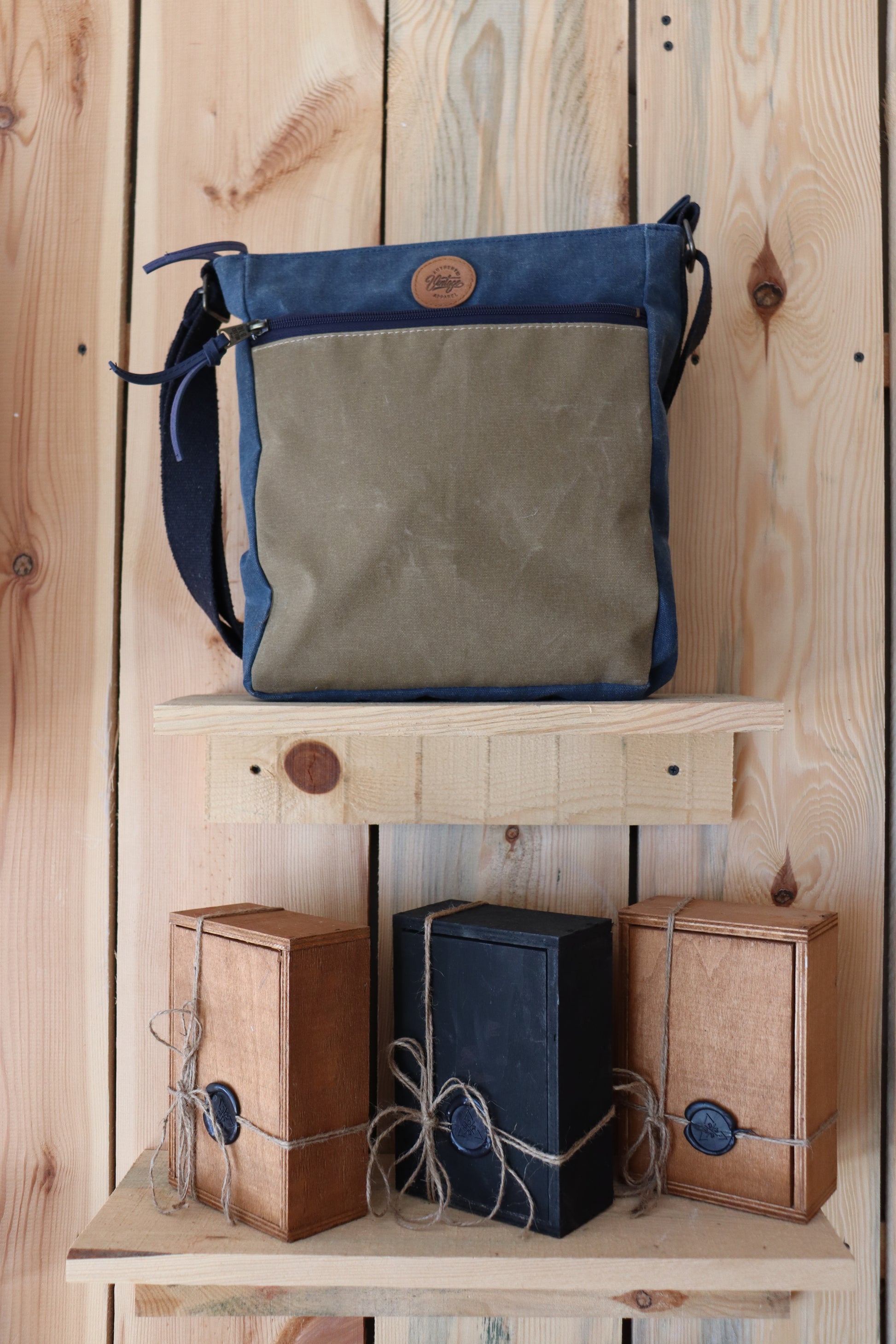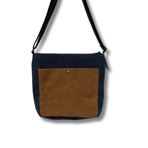 Lacivert-Kahverengi Kanvas Çapraz Çanta – Minimal Tarz