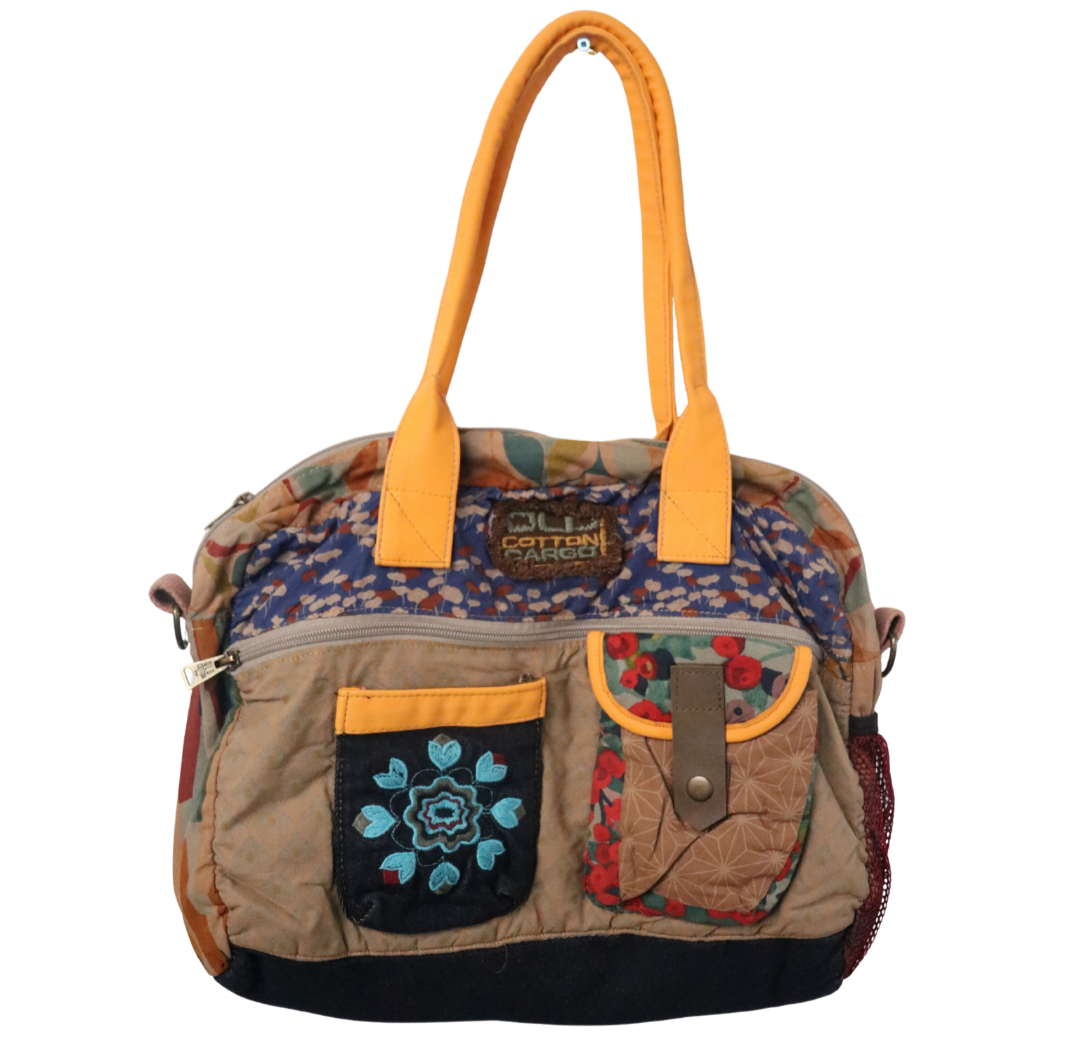 Renkli Patchwork Omuz Çantası – Çiçek Desenli & El İşi Detaylı