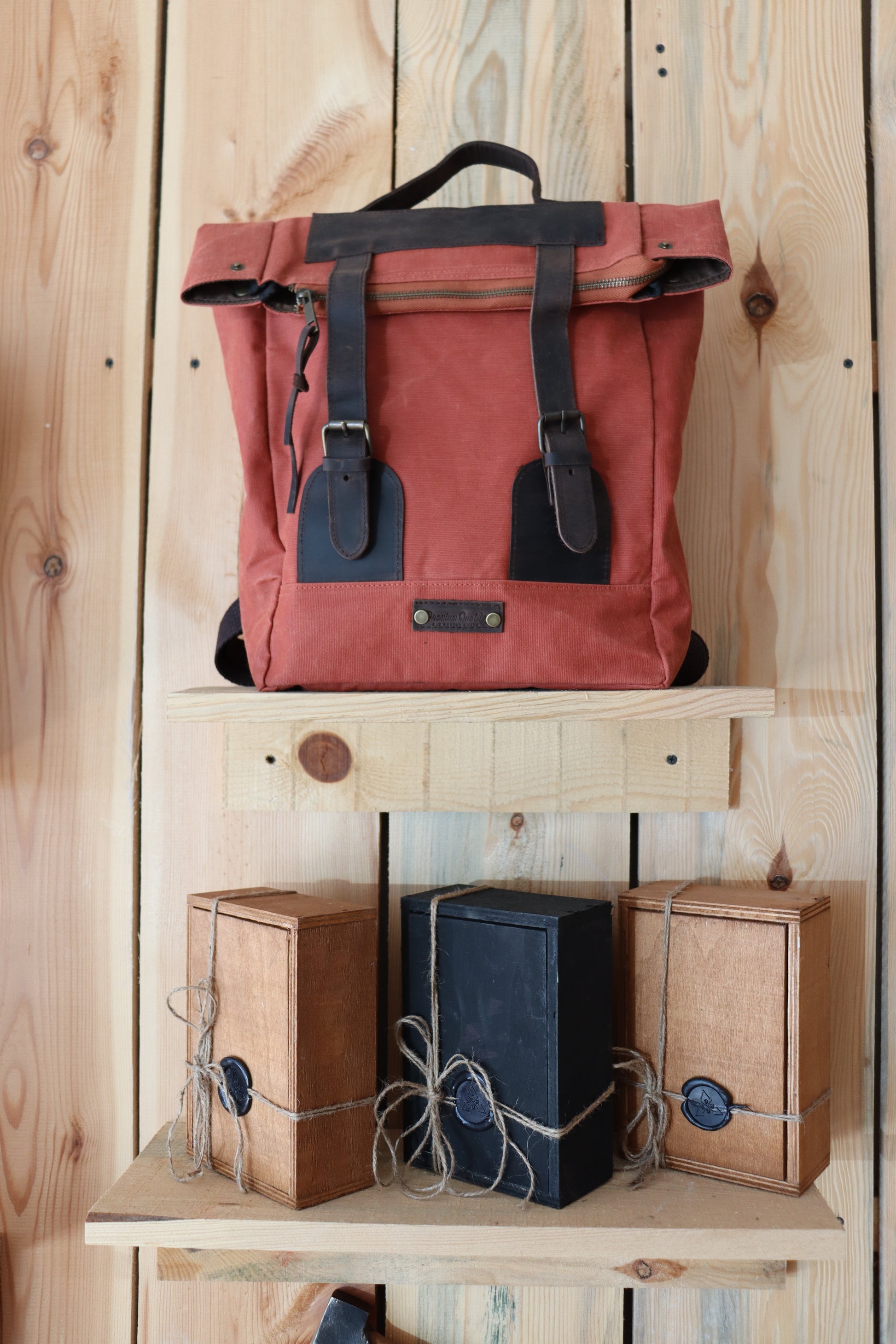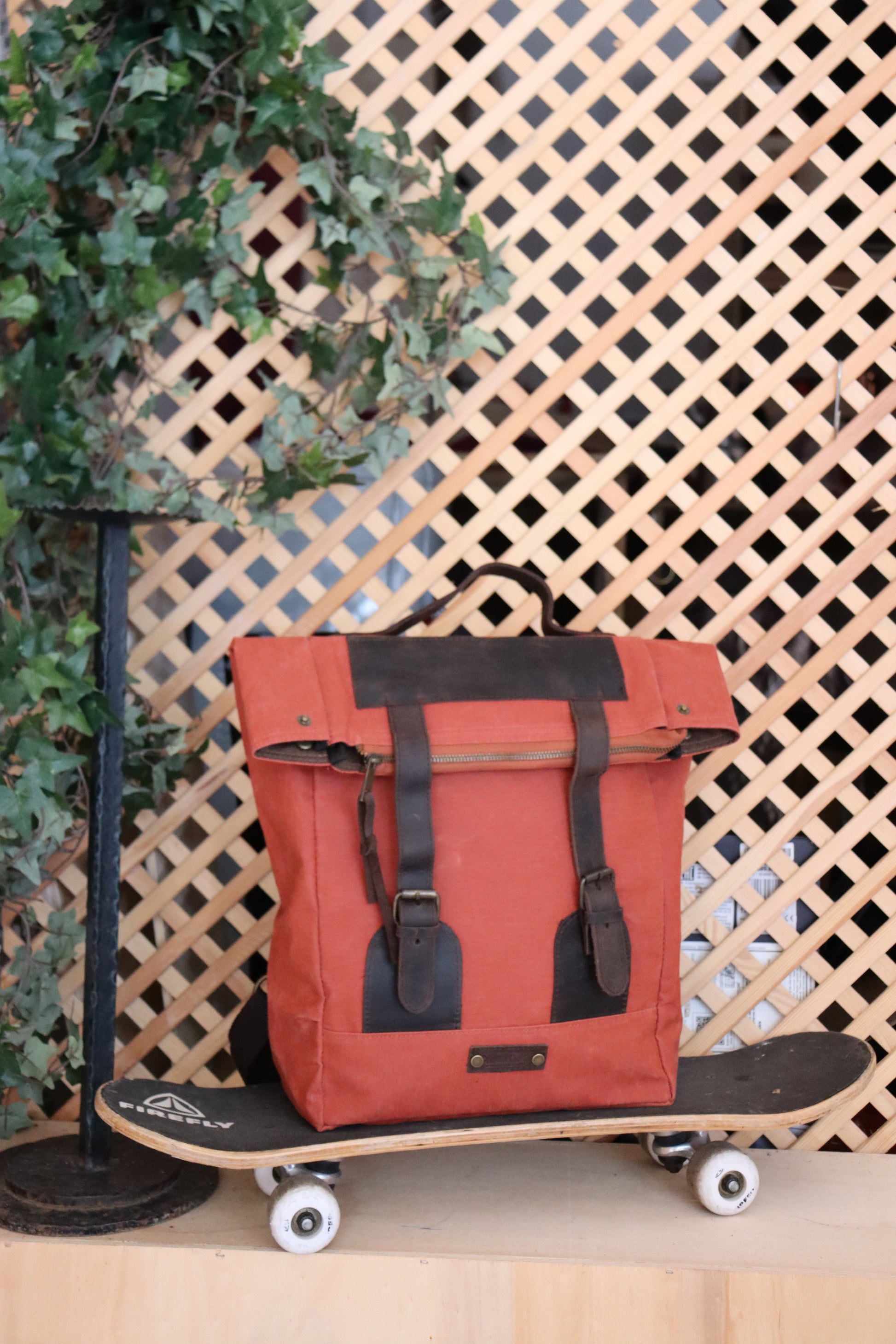 Kiremit Kanvas Deri Tokalı Sırt Çantası – Modern Retro